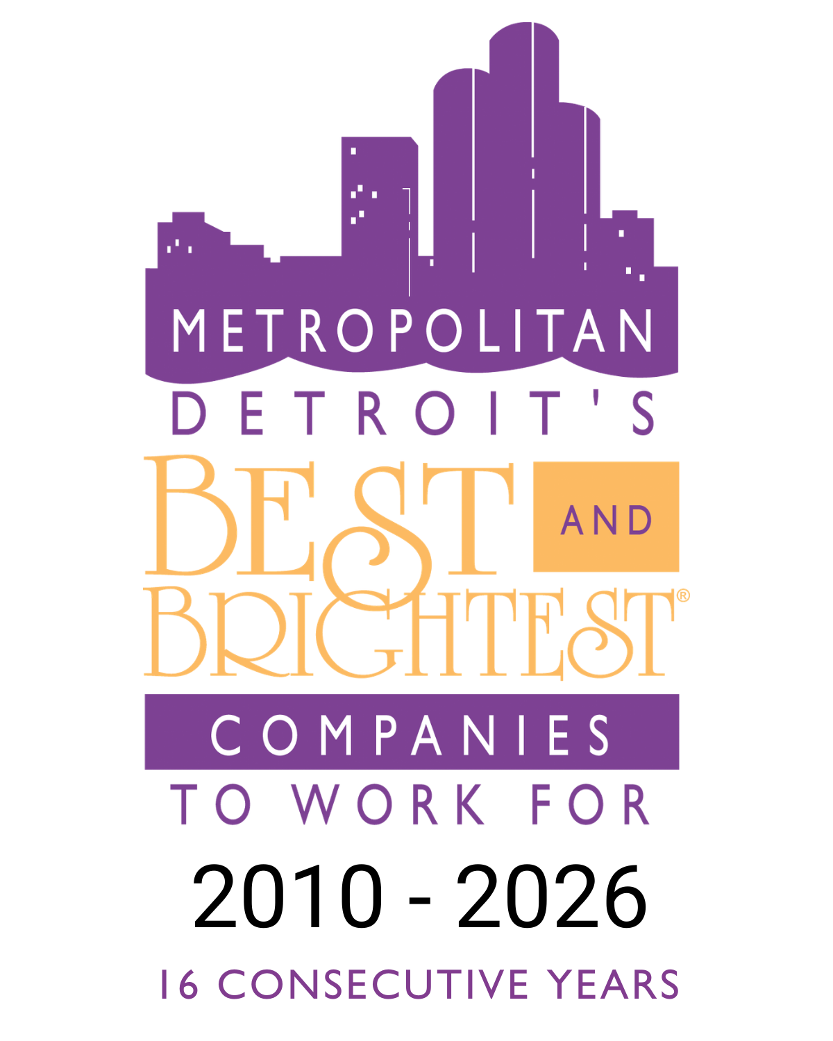 - Recognized as one of Metro Detroit’s 101 Best & Brightest Companies To Work For for 16 consecutive years.